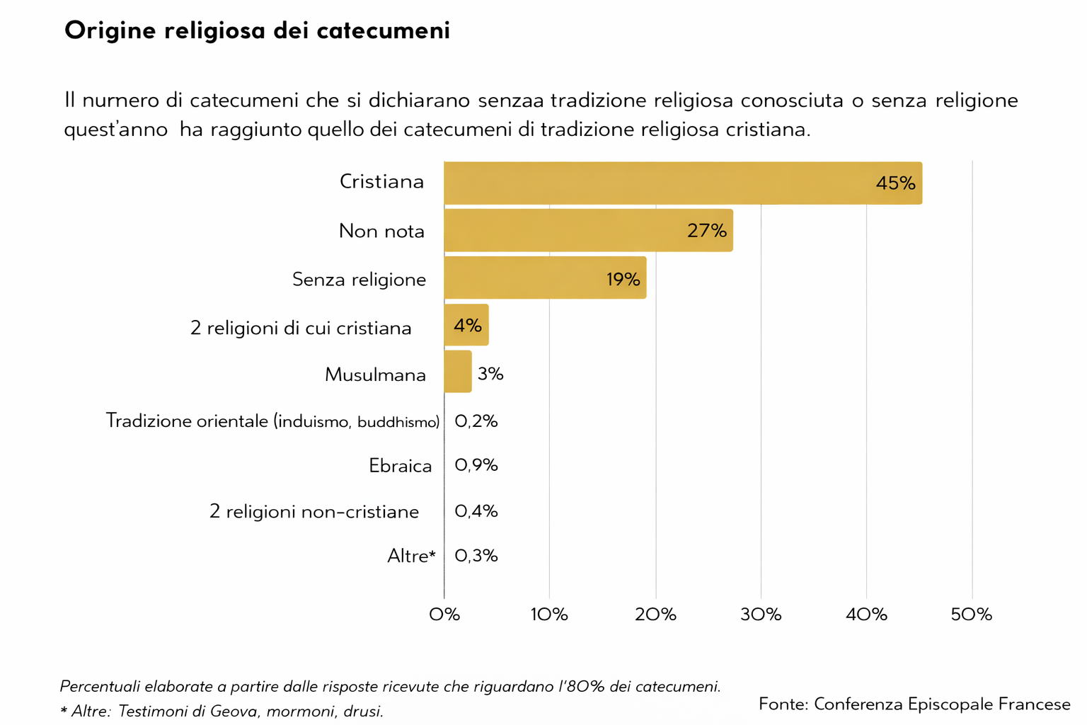 Dieci anni fa i battesimi di adulti erano meno di 4.000 l’anno; oggi sono più che quadruplicati. Tuttavia, questo aumento non compensa il calo generale della pratica religiosa: i battesimi infantili, ad esempio, si sono drasticamente ridotti.